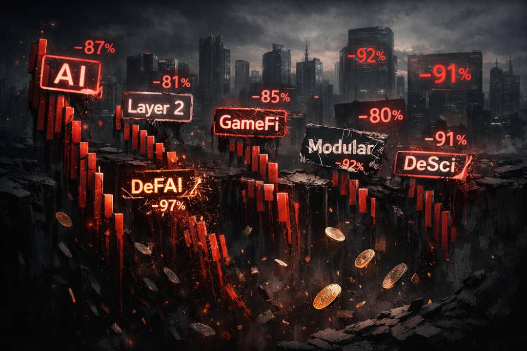 From once-hyped sectors like AI and Layer 2s to newer experimental narratives like DeFAI and DeSci, losses have stacked up fast, and in many cases, relentlessly.