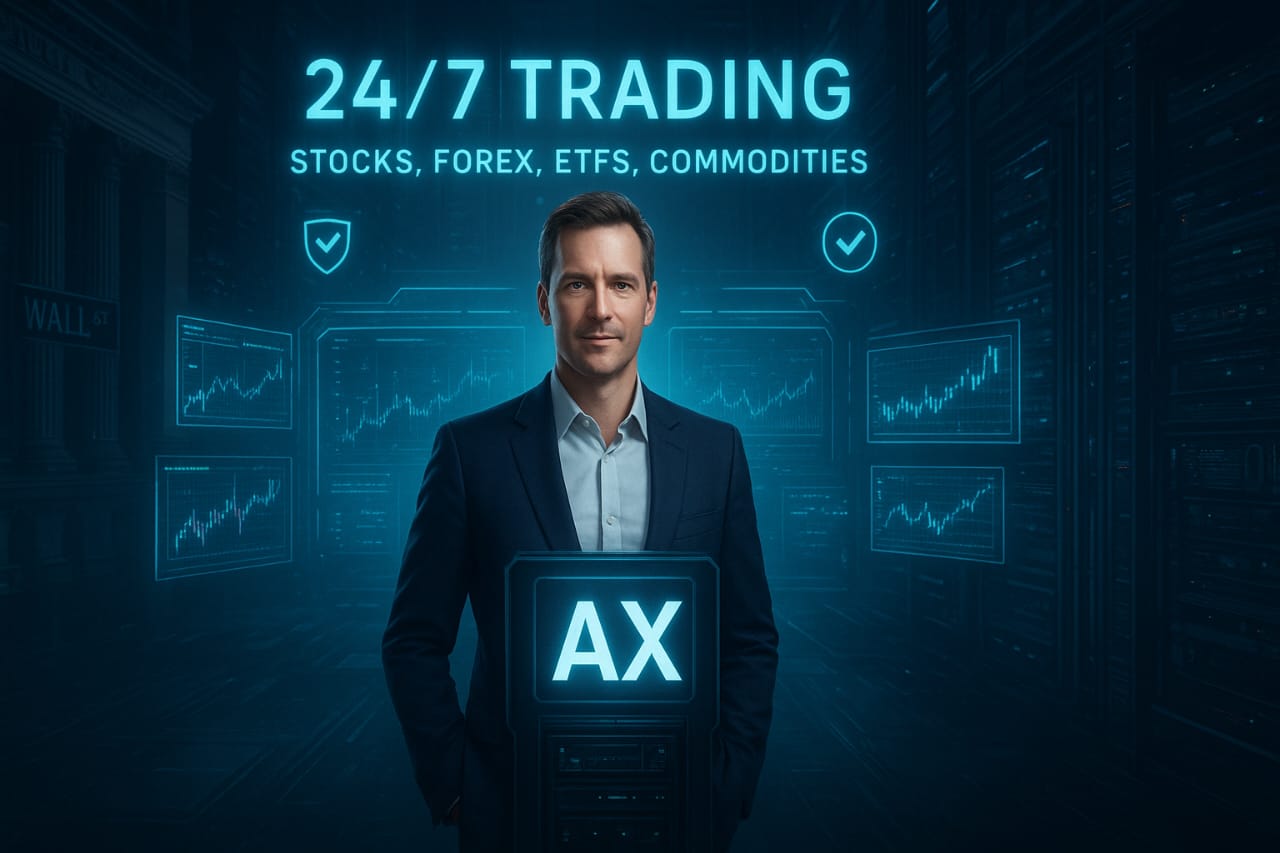 Unlike traditional markets, AX will operate 24/7, giving traders round-the-clock access to stocks and currencies.