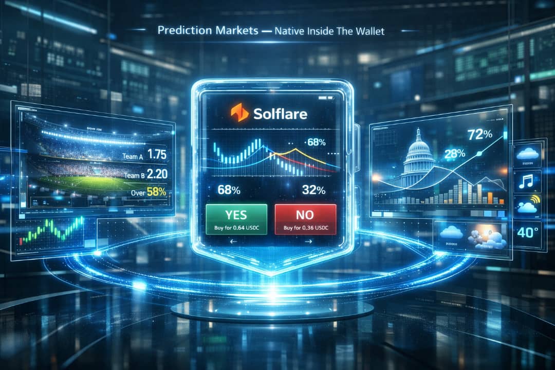 Solana wallet Solflare has introduced prediction markets directly inside its wallet, marking a major expansion of what on-chain wallets can do beyond storage, swaps, and staking.