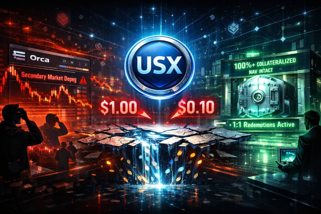 The Solana-based stablecoin USX experienced a sharp but temporary depeg overnight, dropping as low as $0.10 on secondary markets following a rapid liquidity drain.